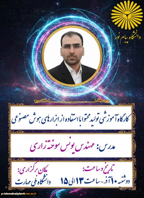 امتیاز دهید : برگزاری کلاس تولید محتوای با استفاده از ابزارهای هوش مصنوعی 3 شنبه 22 آذر 1404 ساعت 20:45