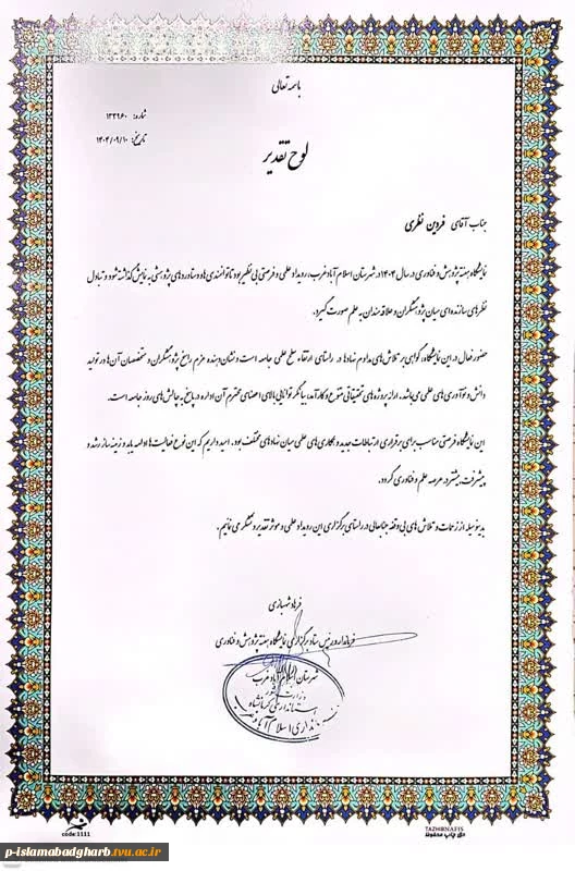 امتیاز دهید : تقدیر فرماندار محترم شهرستان از ریاست و معاونت مرکز بابت برگزاری نمایشگاه هفته پژوهش 5 شنبه 22 آذر 1404 ساعت 21:30