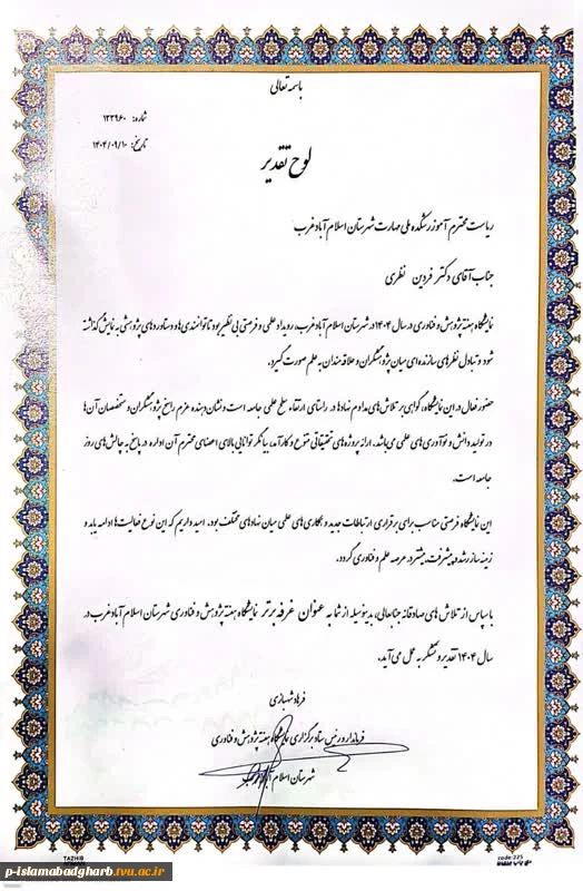 امتیاز دهید : کسب عنوان غرفه برتر پژوهش توسط آموزشکده ملی مهارت اسلام آباد غرب در نمایشگاه دستاوردهای پژوهش ،فناوری وفن بازار توسط آموزشکده ملی مهارت اسلام آبادغرب 3 شنبه 22 آذر 1404 ساعت 21:28